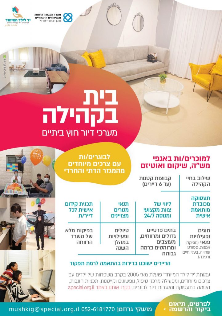 בית בקהילה הינה מסגרת דיור המאפשרת לדיירים לנהל חיים עצמאיים ומלאי משמעות, בהדרכה צמודה של צוות מקצועי ומסור.